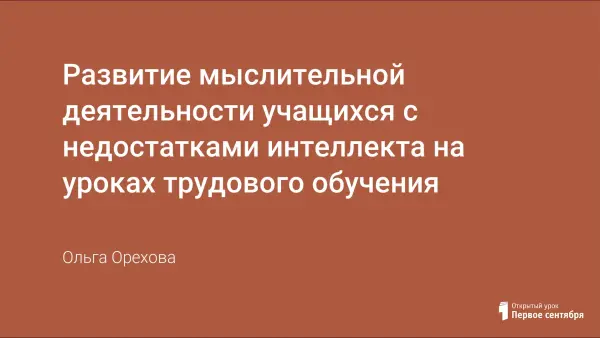 Данная работа посвящена проблеме подготовки учащихся с недостатками интеллекта к самостоятельной трудовой деятельности. Представленные материалы знакомят с работой по развитию мыслительной деятельности, проводимой на разных этапах урока трудового обучения. Материалы работы содержат примеры упражнений, дифференцированных заданий и тестов, применяемых на уроках для развития различных мыслительных процессов.