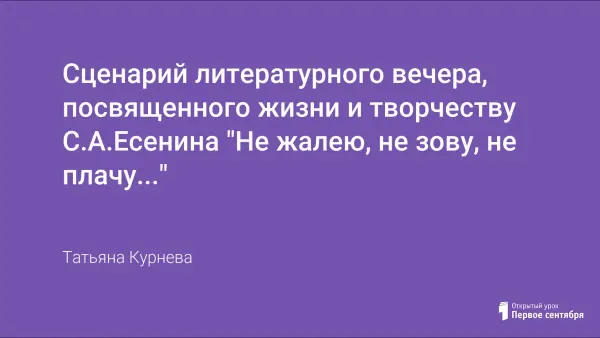 Представлен сценарий литературного вечера, посвященного жизни и творчеству С.А.Есенина.