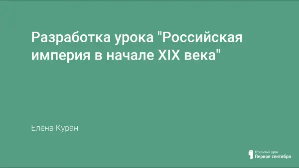 Разработка урока формирующего представление о социально-экономическом и политическом развитии Российской империи в начале XIX в. Объяснение нового материала наглядно иллюстрируется компьютерной презентацией.