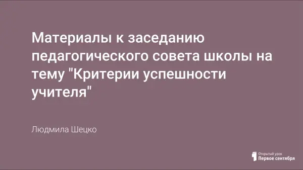 Представлены материалы к заседанию педагогического совета школы на тему "Критерии успешности учителя". Основная задача этого педсовета – не оценить того или иного педагога, а выявить, что нужно для того, чтобы учитель работал успешно и качественно.