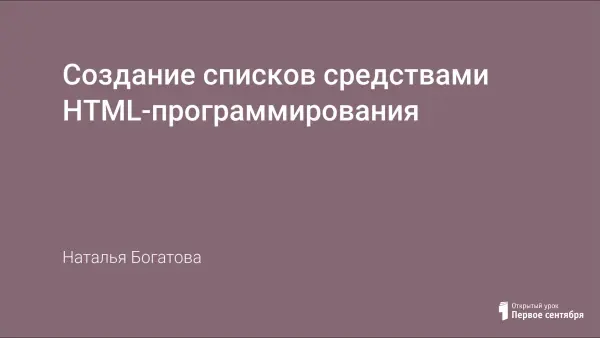 В ходе урока каждый ученик должен получить представление о правилах оформления 3 видов списков на Web-страницах: нумерованного, маркированного и вложенного. Учащиеся должны изучить три вида списков, теги для их создания, а также входящие в них атрибуты, научиться применять изученные теги на практике, создавать Web-страницу со списком.