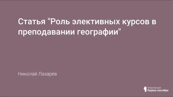 В старшей школе помимо базовых и профильных предметов вводятся элективные курсы по географии. В качестве основной цели можно выделить создание условий для существенной дифференциации содержания обучения старшеклассников с гибкими возможностями построения школьниками индивидуальных образовательных траекторий. В статье представлены основные виды и типы элективных курсов по географии.