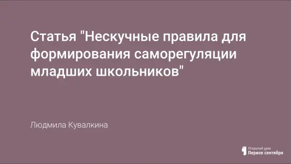 Саморегуляция - это способность управлять собственным психическим состоянием и поведением. Этот компонент у детей начальной школы слабо развит, что связано с возрастными особенностями процесса торможения. Дети затрудняются принять и удержать в памяти общепринятые установки правильного поведения во внешкольное время. Автор делится своей методикой формирования саморегуляции младших школьников.