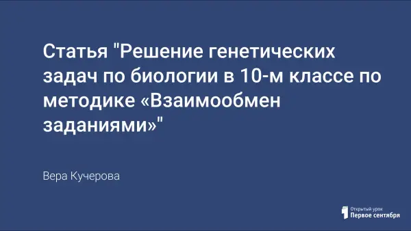 Урок биологии в 10-м классе с использованием методики «Взаимообмен заданиями» (авторская методика кандидата физико-математических наук М.А. Мкртчяна) для отработки генетической терминологии и для решения генетических задач. Для работы учащимся выдается алгоритм, правила работы и карточки с заданием, на столе учителя листок учета и карточки с решениями, на доске записаны вопросы рефлексии.