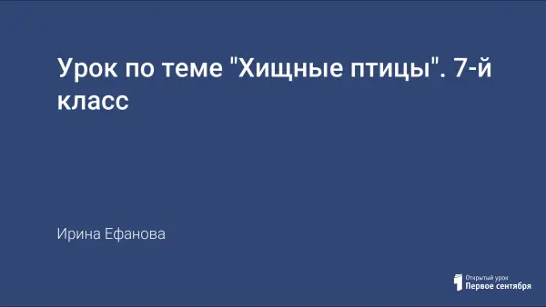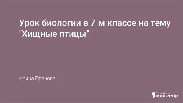 Урок раскрывает особенности строения и жизнедеятельности дневных и ночных хищных птиц. Позволяет закрепить уже имеющиеся знания и понятия о пищевой специализации птиц, типах развития птенцов. Расширяет кругозор, активизирует познавательный интерес к предмету.