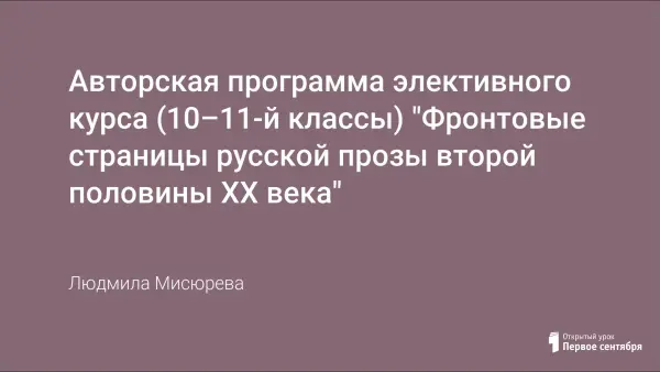 Цели данного элективного курса: приобщение учащихся к богатствам отечественной литературы, открывающей наиболее трагические страницы истории нашей Родины; развитие способностей эстетического восприятия и оценки произведений литературы, а также отраженных в них явлений жизни; воспитание высоких нравственных качеств личности, патриотических чувств, формирование гуманистического мировоззрения.