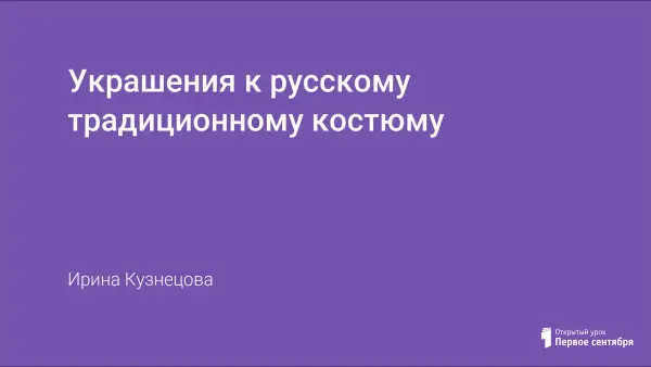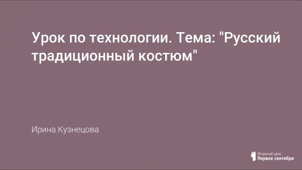Урок призван сформировать интерес к традиционной русской одежде, ее элементам, привносить традиции в современную одежду, развивать интерес у учащихся к историческому наследию, воспитывать преемственность, уважение к народным ценностям, ценить красоту и аккуратность в выполнении старинной одежды.