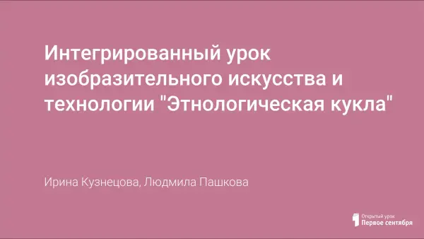 Интегрированный урок изобразительного искусства и технологии "Этнологическая кукла"