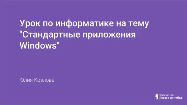 Данный урок является одним из уроков по теме «Операционная система Windows», в ходе которого учащиеся знакомятся с назначением и приёмами работы со стандартными приложениями Windows. Урок включает в себя практическую работу, целью которой является получение и закрепление навыков работы с программами Блокнот, Paint, WordPad.