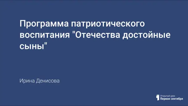 Программа призвана воспитывать в молодых людях гордость за подвиги русских и российских героев – защитников Родины, уважение к Вооруженным силам нашего Отечества и желание защищать его интересы. Ее цель – повышение статуса патриотического воспитания в школе, обновление содержания с учетом отечественных традиций и современного опыта. Программа рассчитана на школьников 7–9-х классов.