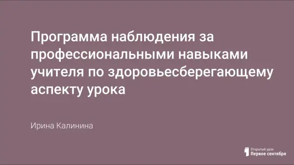 Программа позволяет администрации при посещении урока выявить показатели здоровьесберегающей компетентности учителя. Результаты диагностики процесса позволяют оценить, достигнут ли запланированный результат, существует ли положительная динамика в развитии учащихся, каковы предпосылки для совершенствования работы педагогов.