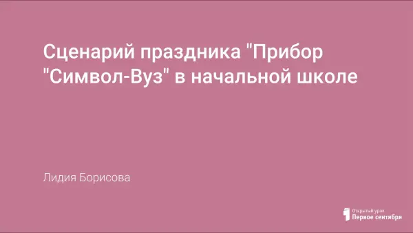 Сценарий праздника демонстрирует в театрализованном виде один из способов сотрудничества учащихся с учителем использованием прибора «Символ-Вуз». Он способствует творческому развитию и раскрытию таланта личности учащегося, его коммуникабельности. Этот прибор используется для формирования самоконтроля, обеспечения обратной связи, легко организует самостоятельную работу учащихся, позволяет оценить свои возможности и воплощает в жизнь главную задачу – «Мы учимся учиться!».