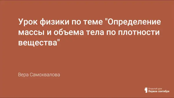Это урок решения задач: определение массы и объёма тела по его плотности. Урок разработан на основе системно-логического подхода, позволяющего одновременно изучить и закрепить новый материал. На уроке используется презентация, выполненная в PowerPoint. Работа будет более плодотворна, если в кабинете установлены компьютеры.