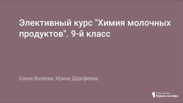 Элективный курс "Химия молочных продуктов". 9-й класс