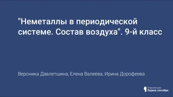 "Неметаллы в периодической системе. Состав воздуха". 9-й класс