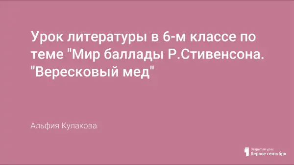 Анализ баллады Р.Стивенсона переходит в размышление о жизни, нравственном выборе человека. Особое внимание уделяется мотивации поступков. Проводится большая словарная работа, повторяются и закрепляются сведения о балладе как жанре. Интересно представлена биография писателя, а также традиции его Родины — Шотландии, края верескового мёда. На уроке звучит волынка.