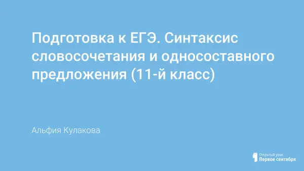 Урок русского языка в 11-м классе является подготовкой к ЕГЭ с целью повторения и систематизации знаний о словосочетании, об односоставных предложениях; совершенствования навыка синтаксического разбора словосочетания и односоставного предложения.