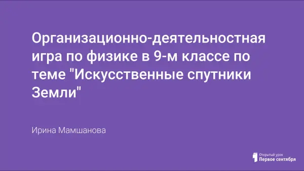 В ходе игры учащиеся знакомятся с искусственными спутниками: геодезическими, метеорологическими, астрономическими, спутниками связи. В процессе урока дети знакомятся с понятием первой космической скорости и учатся ее рассчитывать. Работа в группе позволяет формировать умения применять свои знания для объяснения явлений окружающего мира, отстаивать свою точку зрения.