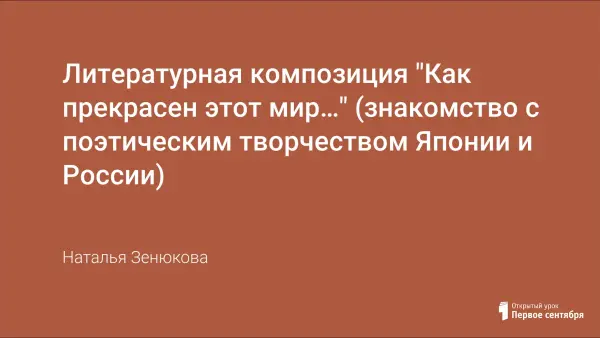 Внеклассное мероприятие составлено для учащихся старших классов. Ребята знакомятся с поэтическим творчеством Японии, ищут точки соприкосновения русской и японской поэзии.