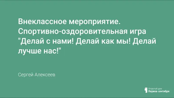 Внеклассное мероприятие. Спортивно-оздоровительная игра "Делай с нами! Делай как мы! Делай лучше нас!"