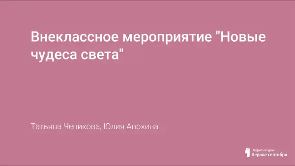 Внеклассное мероприятие "Новые чудеса света"