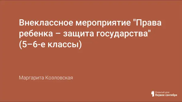 Внеклассное мероприятие рассчитано на учащихся 5–6-х классов. Цель мероприятия - познакомить учащихся с основными правами ребенка, провозглашенными Конвенцией ООН, и способами их реализации.