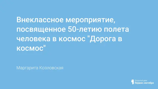 Мероприятие рассказывает учащимся о жизни и подвиге первого космонавта Ю.А. Гагарина. Знакомит ребят с жизнью и подвигами космонавтов; женщинами, покорившими космос. У детей развивается умение творческой и поисковой деятельности.