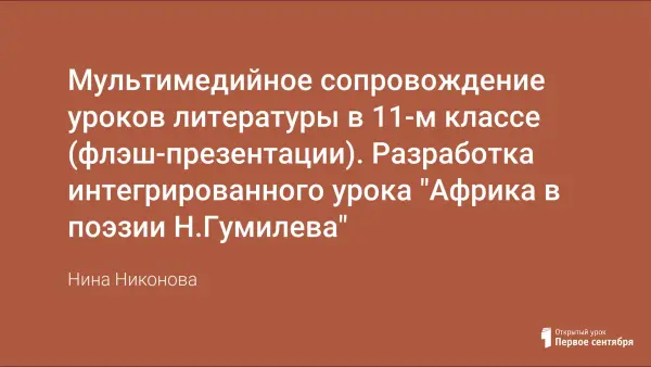 Мультимедийное сопровождение уроков литературы в 11-м классе (флэш-презентации). Разработка интегрированного урока "Африка в поэзии Н.Гумилева"