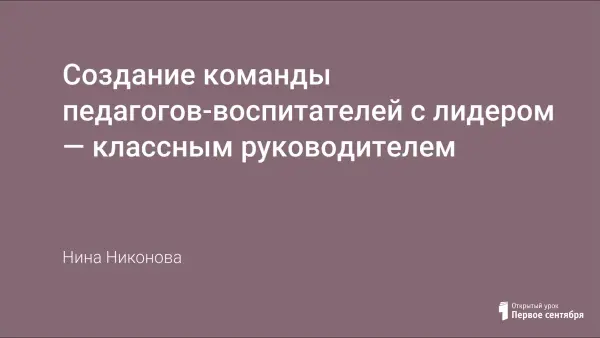Создание команды педагогов-воспитателей с лидером — классным руководителем