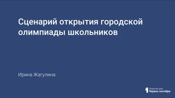 Универсальный сценарий, может легко корректироваться для открытия олимпиады любого уровня. Рассчитан на 15 минут, проходит динамично, вызывает интерес зрителей.