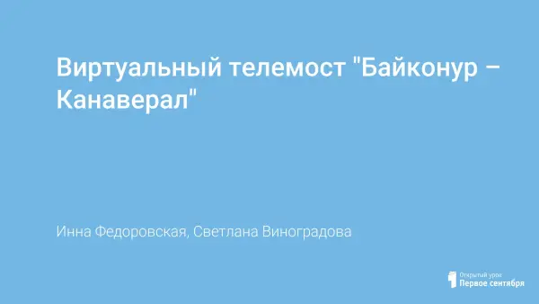 Виртуальный телемост «Байконур – Канаверал» ‒ внеклассное мероприятие для учащихся 9‒11-х классов, посвященное истории космонавтики; проводится для групп учащихся, свободно владеющих английским языком и хорошо подготовленных по истории развития космонавтики в СССР и США.