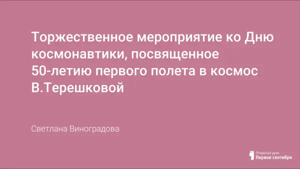 Мероприятие посвящено 50-летию первого полета в космос В.В. Терешковой. Рассматриваются особенности пребывания на орбитальных станциях женщин-космонавтов, а также нелегкий путь женщин в авиации. Рекомендуется для внеклассной работы со школьниками, а также для применения на уроках физики для углубленного изучения темы «Космонавтика».