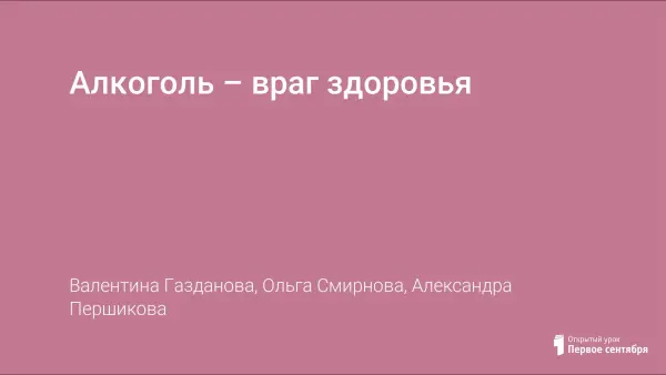 Борьба с алкоголизмом – общее дело нации. Наша статья посвящена профилактике употребления спиртных напитков среди подростков. В работе подробно дана характеристика влияния алкогольной интоксикации на различные системы органов человеческого организма.