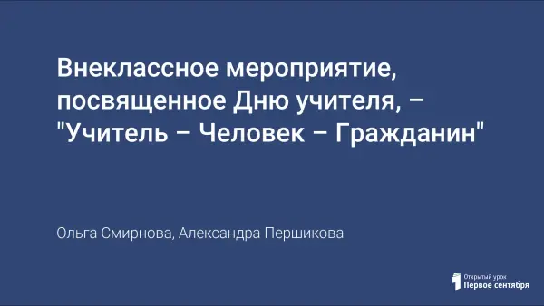 Внеклассное мероприятие направлено на формирование личности гражданина России, посвящено Дню учителя и способствует развитию ценностно-смысловых, учебно-познавательных, информационных и коммуникативных компетентностей учащихся.