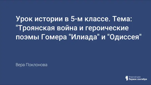 Урок истории в 5-м классе. Тема: "Троянская война и героические поэмы Гомера "Илиада" и "Одиссея"