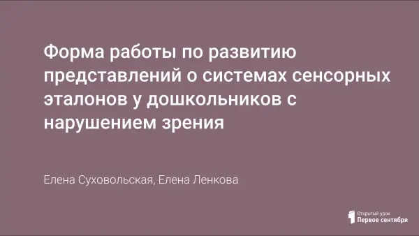 Данная работа предполагает оказание практической помощи воспитателям и тифлопедагогам в организации и проведении работы по развитию представлений о системах сенсорных эталонов у дошкольников с патологией зрения. Кроме того, материал, представленный в статье, направлен на решение проблемы, остро стоящей в настоящее время, - взаимодействие дошкольного образовательного учреждения и семьи.