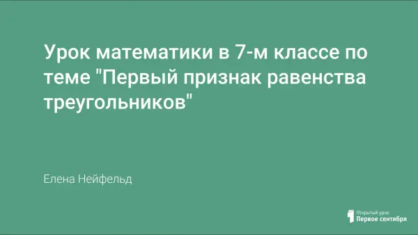 Цели данного урока: систематизировать знания учащихся о равенстве отрезков, о равенстве углов, о равенстве треугольников на основе изученных аксиом; рассмотреть первый признак равенства треугольников (по двум сторонам и углу между ними) на основе теоремы; научить учащихся применять первый признак равенства треугольников при решении задач.