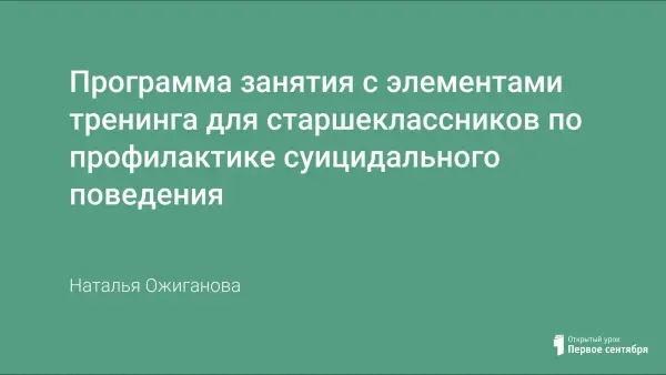 Профилактика суицидального поведения школьников – весьма важное направление работы психолога, которое в первую очередь реализуется через коррекцию самопринятия личности подростков; организацию условий, способствующих осознанию своего жизненного предназначения; расширение репертуара конструктивных способов совладающего поведения.