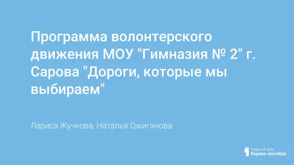 Программа волонтерского движения состоит из модулей "Здоровье", "Право", "Безопасность", позволяющих систематизировать, конкретизировать и направить деятельность на формирование у подростков и молодежи активной жизненной позиции, установок на здоровый образ жизни, систематизацию, расширение и углубление знаний учащихся по безопасности жизнедеятельности, формированию и развитию правовой культуры гимназистов, защите и пропаганде социальной и политической позиции.