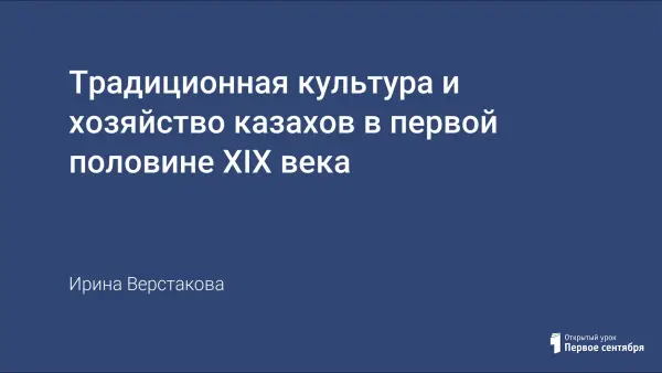 В статье представлен урок-панорама на тему: "Традиционная культура и хозяйство казахов в первой половине ХIХ века". В работе можно увидеть некоторые слайды презентации, показ которой сопровождал урок.
