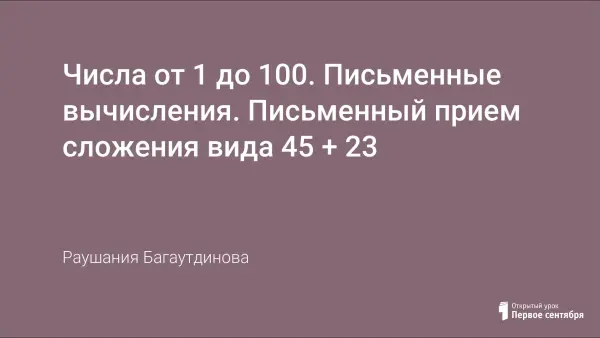 Урок математики во 2-м классе знакомит с письменным приемом сложения, закрепляет навык нового приема сложения, совершенствовует вычислительные навыки и отрабатывает умение решать текстовые задачи.