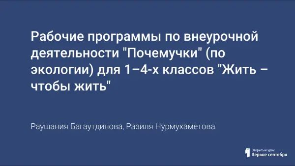 Рабочие программы по внеурочной деятельности "Почемучки" (по экологии) для 1–4-х классов "Жить – чтобы жить"