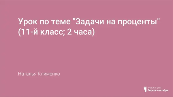 Как показывает практический опыт работы в школе, тема "Проценты" не каждому доступна. Многие выпускники 9–11-х классов даже не берутся решать на экзаменах задачи на проценты. Это происходит от того, что после изучения основных задач в 5–6-х классах мы не так много времени на уроках можем уделить текстовым задачам. Поэтому на уроках обобщающего повторения в 11-м классе я такую тему всегда планирую.