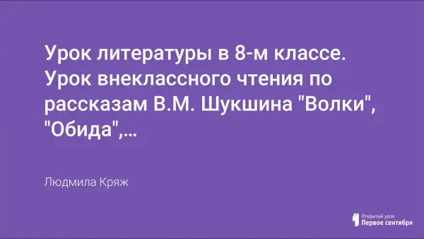 Разработка урока литературы в 8-м классе. На уроке проводится параллель между творчеством В.М. Шукшина и творчеством уральской поэтессы Л.К. Татьяничевой. Целью урока является воспитание нравственности, духовности, умения видеть и ценить прекрасное.