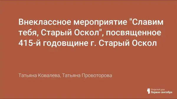 Внеклассное мероприятие "Славим тебя, Старый Оскол", посвященное 415-й годовщине г. Старый Оскол