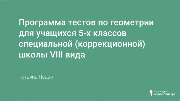 Формирование математических, в том числе геометрических знаний у учащихся специальной (коррекционной) общеобразовательной школы VIII вида имеет большое практическое значение. Целью данной программы является определение уровня сформированности знаний учащихся на данном этапе обучения (5-й класс), выявление учебных достижений или недостатков и своевременная коррекция образовательного процесса, а также оптимальность и объективность оценивания степени усвоения учебного материала.