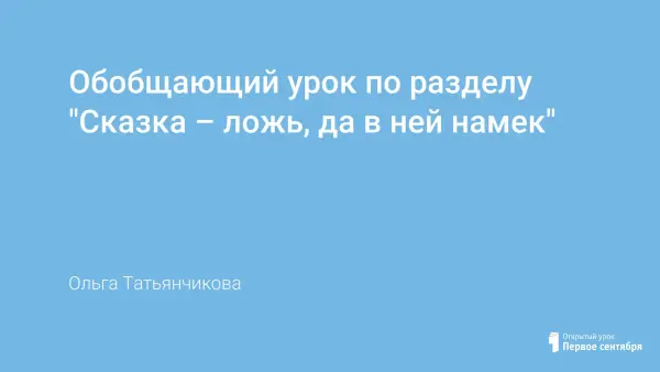 Разработка урока литературного чтения в развивающей системе "Школа–2100". Цель урока – показать, как в форме игры-соревнования провести обобщающий урок по разделу "Сказка – ложь, да в ней намек".