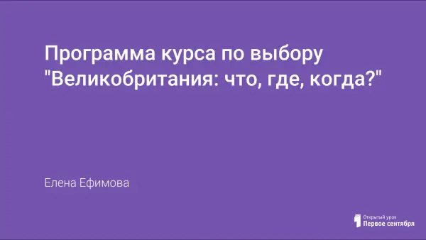 Курс разработан для учащихся 9-го класса в рамках предпрофильной подготовки. Программа построена на интеграции английского языка и учебных дисциплин гуманитарного цикла. Содержание курса способствует ориентации в социокультурных аспектах Великобритании, создает условия для понимания необходимости проявления уважения к традициям и стилю жизни представителей другого культурного сообщества.