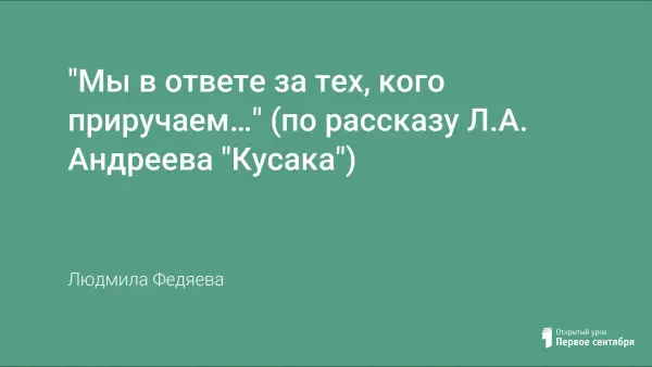 Урок в 7-м классе по произведению Л.Андреева «Кусака» способствует привитию доброго и внимательного отношения к природе, животному миру. Развивает творческие способности учащихся и подводит к мысли об ответственности каждого из нас за то, что происходит вокруг. Перед уроком проводится большая подготовительная работа.