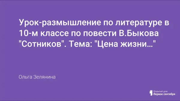 Урок литературы по повести В. Быкова «Сотников» предназначен для преподавания в старших классах. Даёт возможность учащимся подумать над вопросами истинного и ложного, вечного и суетного. Предлагает взглянуть на повесть с иной точки зрения. Рассчитан на 2 часа.